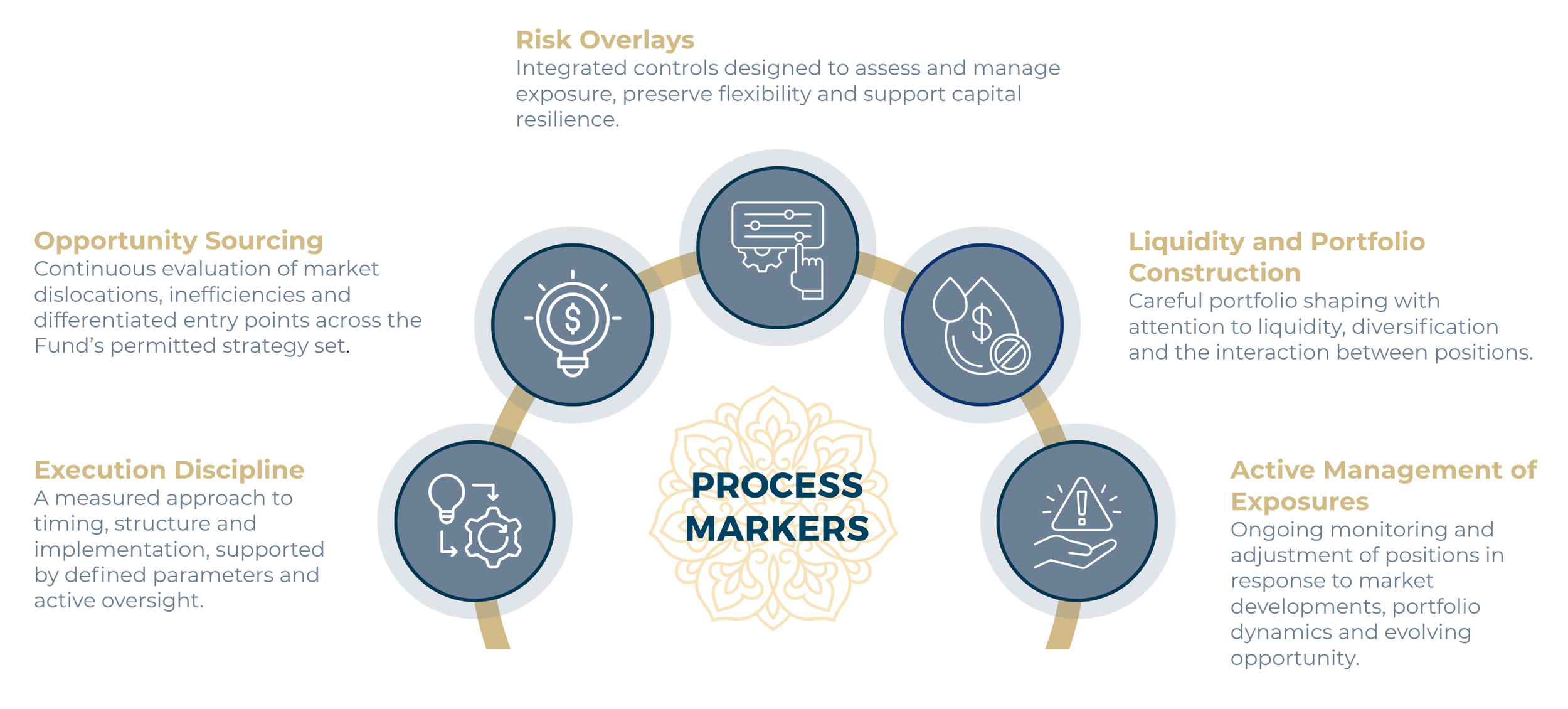 The Fund seeks to preserve capital while pursuing attractive risk-adjusted returns through disciplined execution across a flexible, multi-strategy mandate. Our approach is designed to balance resilience with selectivity, combining active portfolio management, strategic flexibility and a measured response to market opportunity.